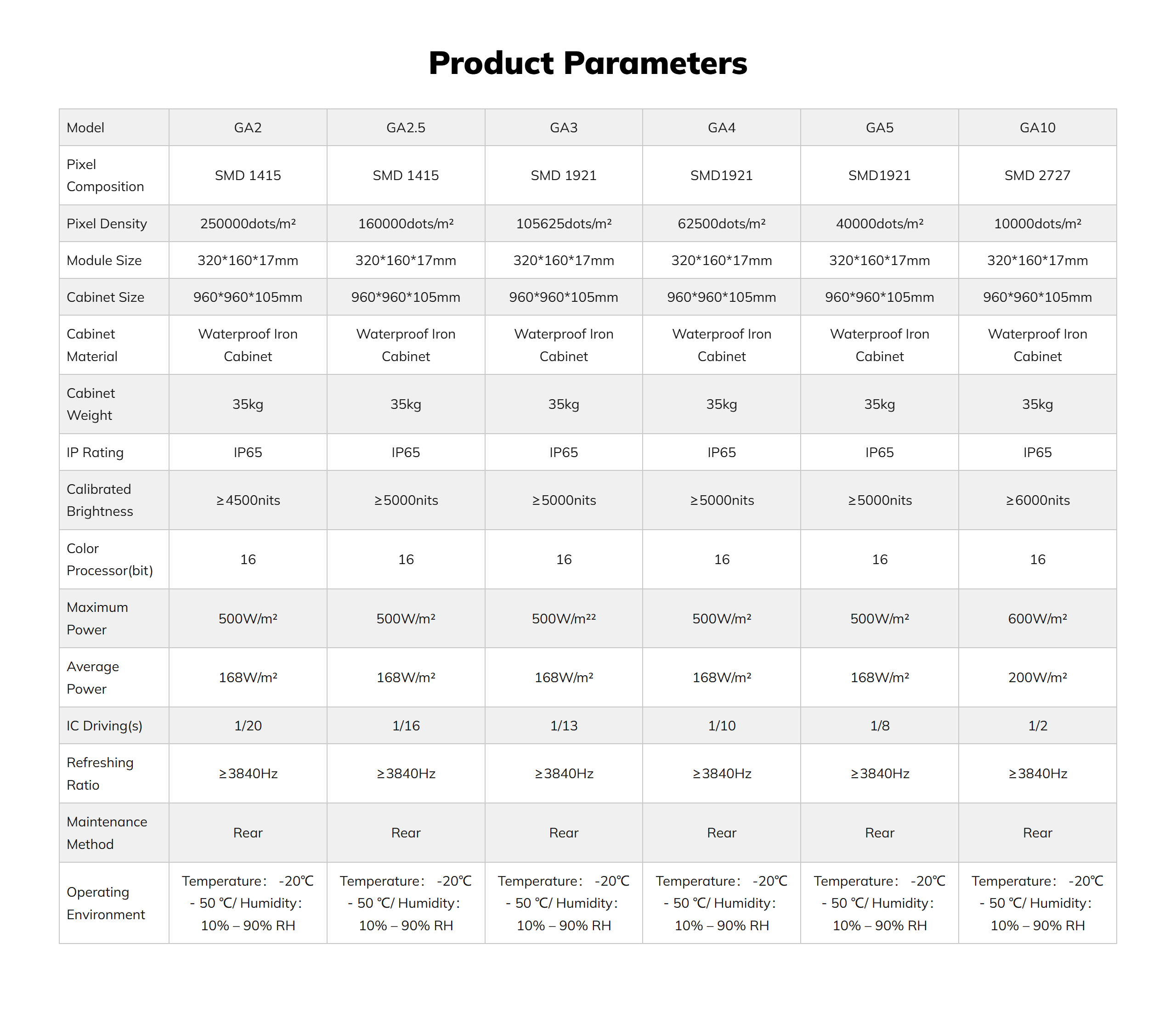 Pixel Pitch: 2mm /2.5mm /3mm /4mm /5mm /10mm