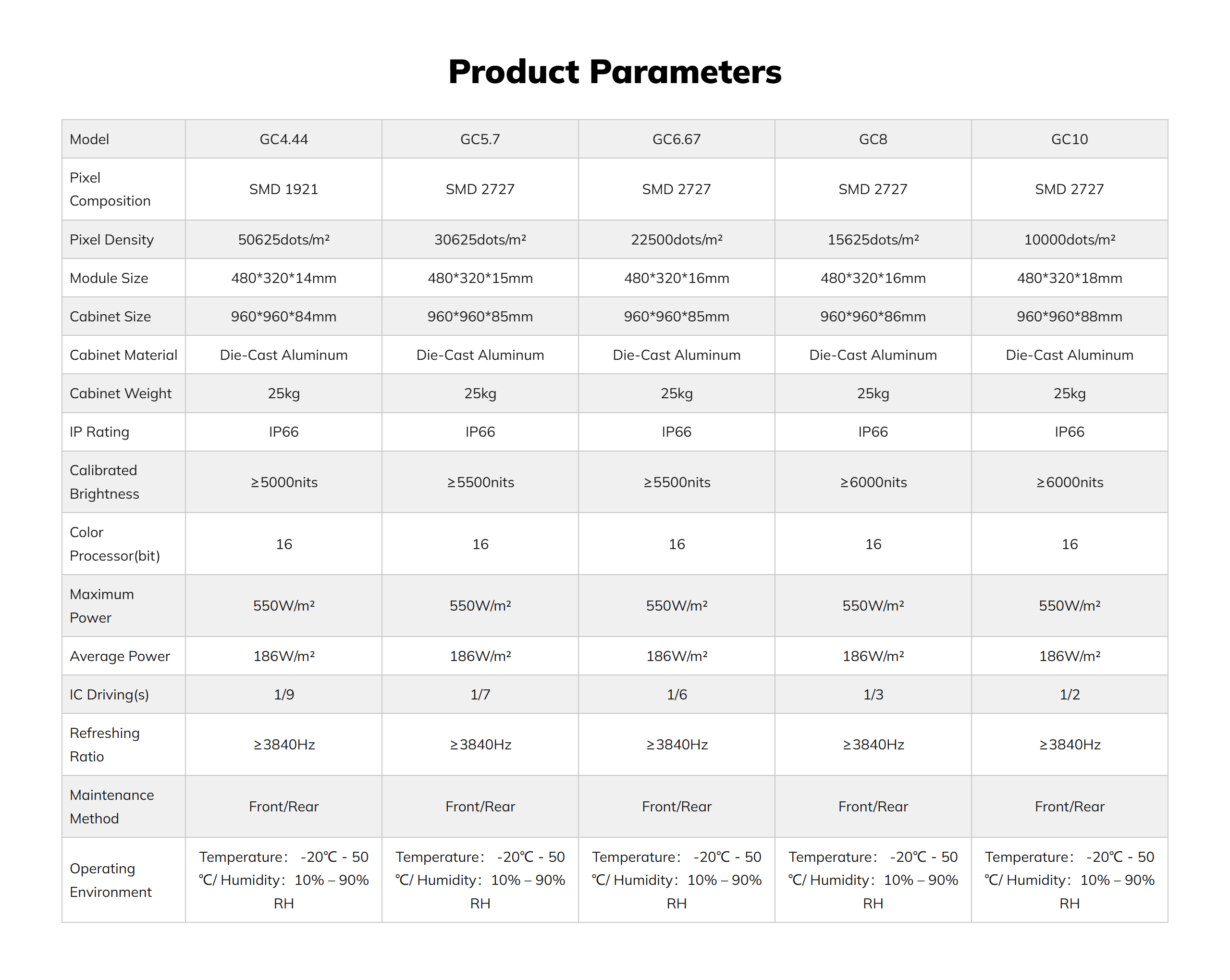 Pixel Pitch: 4.44mm /5.7mm /6.67mm / 8mm/ 10mm